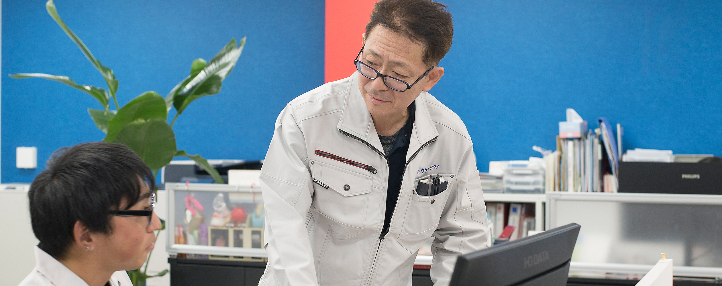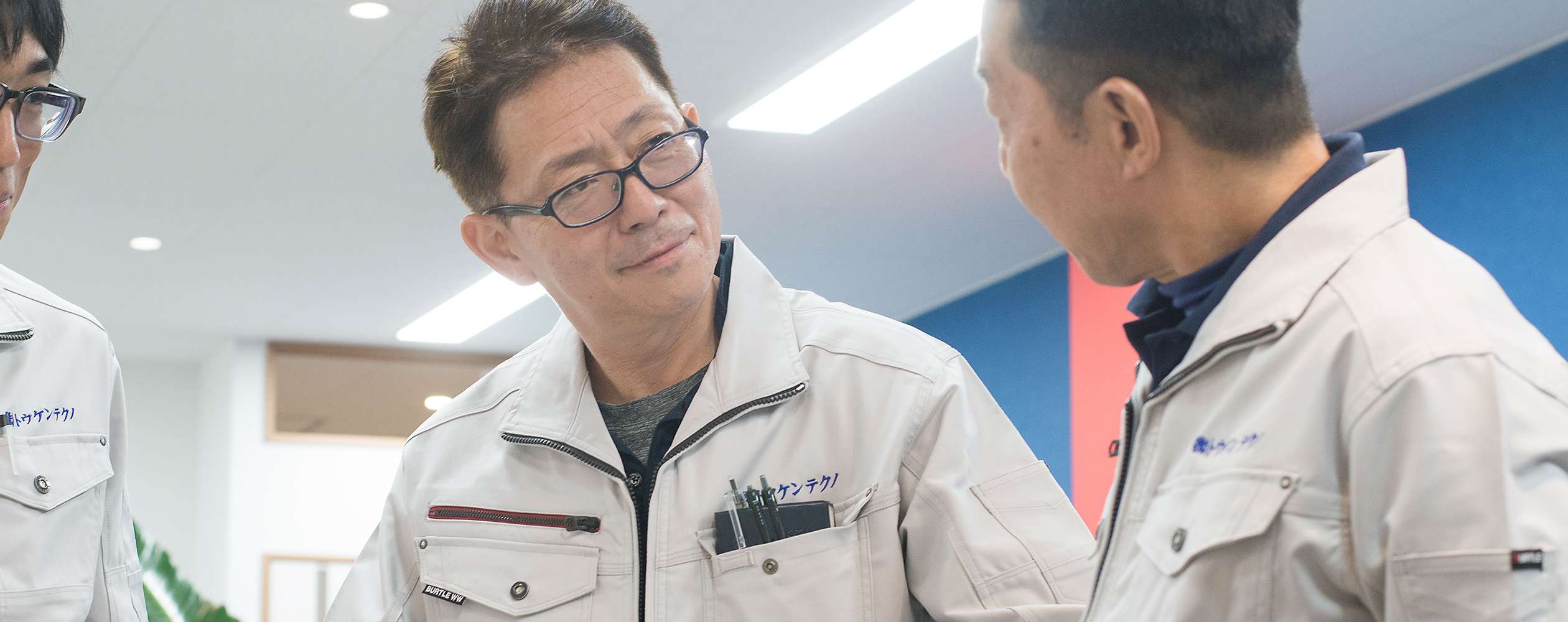 やる気があって、元気のいい人がこの仕事に向いています。トウケンテクノは困ったときには助け合い、無事終了したときに皆で喜びあう環境があります。会社は社員の働きぶりをしっかり評価してくれますので、やる気がある人ならば、モチベーションを保ちながら成長することができると思います。